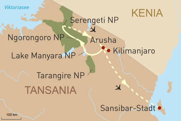 Diese Reise anfragenID: 40011Endlose Savannen, wilde Landschaften, artenreiche Fauna und weiße Traumstrände: Tansania beeindruckt durch seine Vielfältigkeit. Erleben Sie auf dieser Reise Tansania auf höchstem Niveau: Entdecken Sie die faszinierende Vogelwelt und die Baumlöwen im Lake Manyara-Nationalpark. Bestaunen Sie im einzigartigen Ngorongoro-Gebiet den weltgrößten Krater und gehen Sie anschließend im berühmten Serengeti-Nationalpark auf Pirschfahrt, wo Sie mit etwas Glück die "Big Five" entdecken. Die unvergesslichen Eindrücke können Sie am Ende der Reise in einer Luxuslodge auf Sansibar, am weißen Sandstrand und umgeben von türkisfarbenem Meer, Revue passieren lassen.