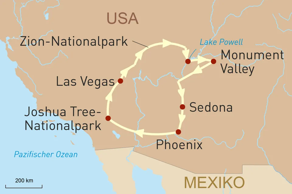 z. B. 22-tägige Mietwagenreise durch den Südwesten der USA