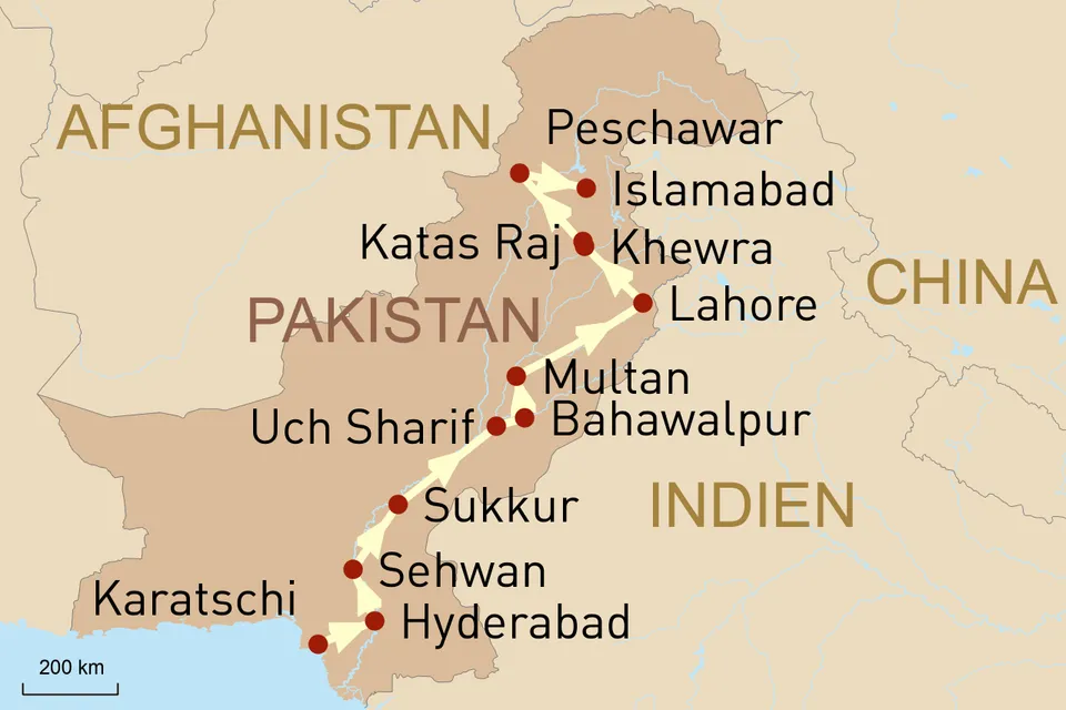 z.B. 15-tägige Rundreise durch Pakistan von der Küste Karatschis bis zur Hauptstadt Islamabad