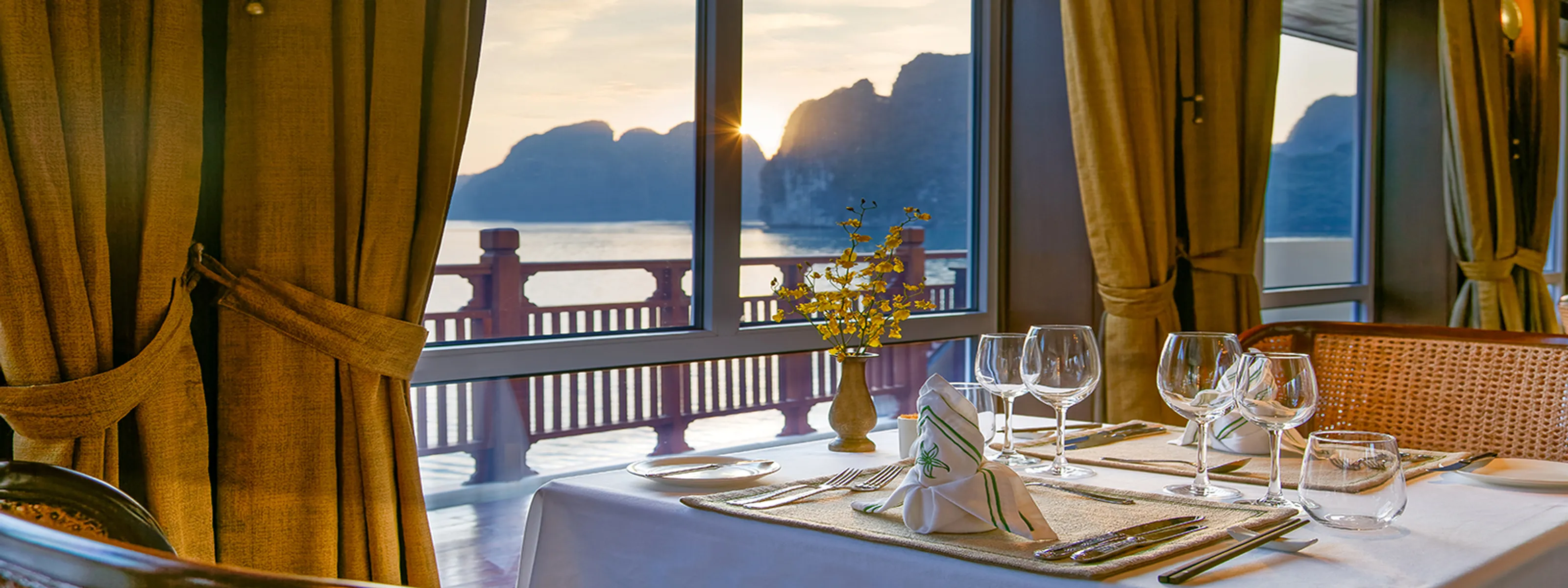 Sie lassen Hanoi heute hinter sich und brechen auf zu Ihrem nächsten Ziel, der Lan Ha-Bucht, der noch recht unbekannten Erweiterung der Halong-Bucht. An Bord des luxuriösen Boutique-Schiffes Ylang entdecken Sie die Schönheit der Bucht aus nächster Nähe. Bald erreicht Ihr Schiff Cat Ba, die größte Insel des Archipels, wo das charmante Dorf Viet Hai zu Erkundungen einlädt. Lassen Sie den Tag bei einem köstlichen Dinner an Bord ausklingen, während die Sonne im Südchinesischen Meer untergeht. (F M A)