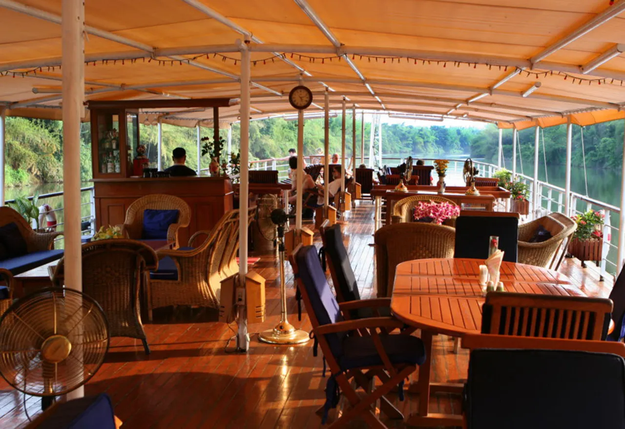Die charmante RV River Kwai ist ein im Kolonialstil gebautes Boutique-Kreuzfahrtschiff und verfügt über zwei Decks. Die RV River Kwai bietet maximal 20 Gästen in 10 behaglichen Teakholz-Zweibettkabinen Platz. Die 12 qm² großen Kabinen befinden sich auf dem Hauptdeck und verfügen über Klimaanlage, Dusche, WC, Fön, Minibar, Minisafe, sowie Tee-/Kaffeekocher. Verglaste Schiebetüren ermöglichen einen schönen Ausblick auf die gemächlich vorbeigleitende Landschaft. Das offen gestaltete Oberdeck birgt eine gemütliche Lounge und Bar mit bequemen Korbsesseln und einen Speisebereich, in dem aufmerksames Personal köstliche Mahlzeiten und Cocktails serviert. Auf dem Vordeck können Sie bei einem Drink das Leben am Ufer und farbenfrohe Vögel beobachten und die ständig wechselnde Landschaft in ihrer ganzen Pracht genießen.
