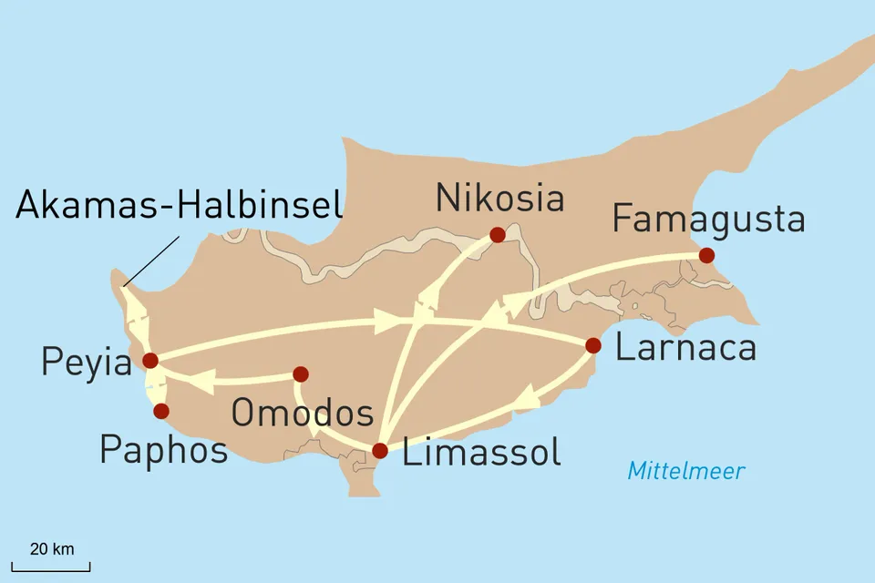 z. B. 10-tägige Exklusivreise mit ausgewählten Unterkünften durch Südzypern