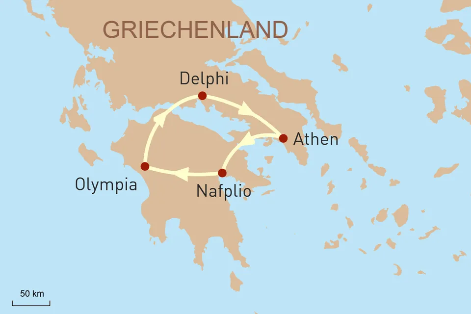 Heute verlassen Sie Athen und beginnen Ihre Reise mit dem Mietwagen über die geschichtsträchtige Halbinsel Peloponnes. Über den berühmten Kanal von Korinth, der die Peloponnes künstlich vom griechischen Festland trennt, führt Sie Ihre Reise entlang der Ostküste der Halbinsel in die einstige Kultstätte Epidauros. Ein gewaltiges Amphitheater lockt Besucher in eine Vergangenheit, in der dieser Ort als Kultstätte des Heilgottes Asklepios und seines Vaters Apollo diente und Schauplatz zahlreicher kultureller und athletischer Feste und Wettkämpfe war. Zwischen dicht bewachsenen Hügeln und Olivenhainen hindurch fahren Sie anschließend durch das Inland bis an den Argolischen Golf, wo Sie in der Hafenstadt Nafplio Ihr heutiges Tagesziel erreichen. Malerisch auf einem Felsvorsprung gelegen, lädt das pittoreske Städtchen zu einem entspannten Spaziergang durch die Altstadt mit ihren charmanten Einkaufsgassen, Cafés und Tavernen ein. (F)