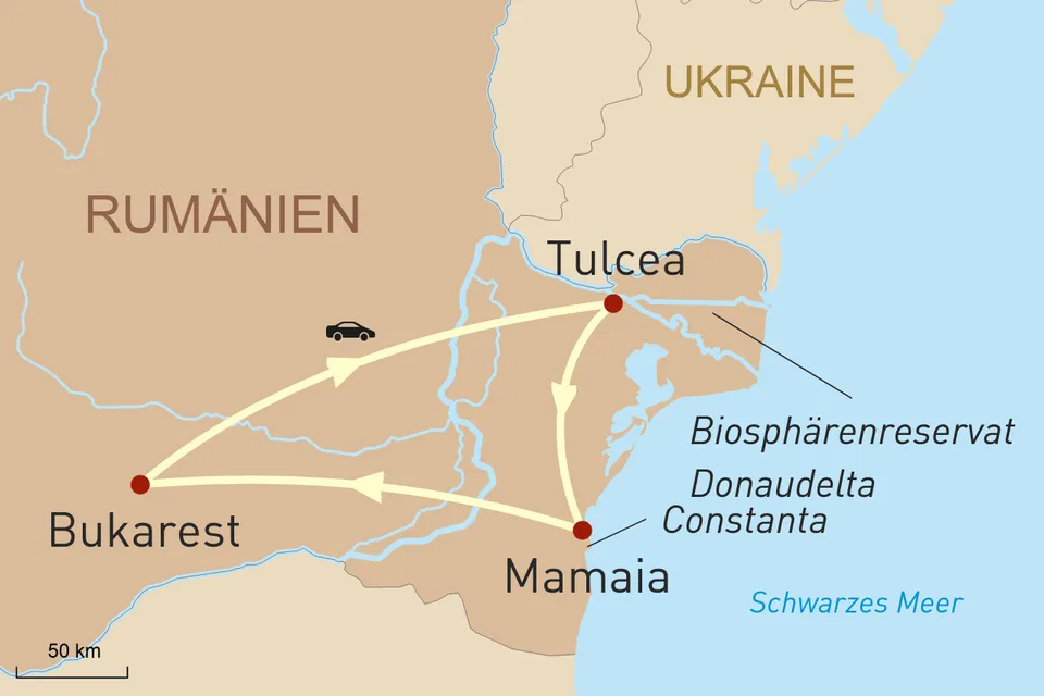 Tag 1Willkommen in der Hauptstadt Rumäniens!Nach Ihrer Ankunft am Flughafen Bukarest werden Sie herzlich von Ihrer Reiseleitung empfangen und anschließend zu Ihrem Hotel in der rumänischen Hauptstadt gebracht.Tag 2Bukarest – Zwischen Orient und OkzidentNach dem Frühstück beginnt Ihre Stadtbesichtigung mit einer deutschsprachigen Reiseleitung. Die Architektur spiegelt viele Epochen wider: Neobarock, Jugendstil, Bauhaus, Nationalromantik und Neoklassizismus prägen das Stadtbild. Aufgrund des französischen Einflusses erhielt Bukarest den Beinamen „Paris des Ostens“. Die Altstadt präsentiert sich in einem ungewöhnlichen Mix aus restaurierten Altbauten, Plattenbauten und modernen Hochhäusern. Ein grünes Refugium ist der über 150 Jahre alte Cismigiu Park mit Blumenbeeten und altem Baumbestand. Am Platz der Revolution erinnert ein Denkmal an Ceaușescus Herrschaft. Ganz in der Nähe liegt das Athenäum – ein Konzertsaal mit beeindruckender Akustik und klassizistischem Flair. Das Schloss Cotroceni wurde 1888 für König Karl I. erbaut. Heute beherbergt es das Nationalmuseum sowie den Amtssitz des Präsidenten. Ein Höhepunkt des Tages ist der Besuch des gigantischen Parlamentspalasts – nach dem Pentagon das zweitgrößte Gebäude der Welt. Ceaușescu ließ es in nur fünf Jahren von 400 Architekten und 20.000 Arbeitern errichten, inspiriert durch seine Nordkorea- Reise. Direkt daneben besuchen Sie die ehemalige Residenz des Diktators – die Primaverii-Villa. Zu Mittag kehren Sie in ein traditionelles Restaurant ein und genießen rumänische Spezialitäten. (F M)Tag 3Fahrt zum DonaudeltaNach dem Frühstück fahren Sie eine längere Etappe bis nach Tulcea, dem Tor zum Donaudelta, das 1993 von der UNESCO zum Weltnaturerbe erklärt wurde. Das Gebiet am Mündungsgebiet der Donau ins Schwarze Meer beheimatet rund 5.200 Tier- und Pflanzenarten. Röhrichte, schwimmende Inseln, Altarme, Seen und Auwälder bilden ein einzigartiges Netzwerk von über dreißig Ökosystemen. In Tulcea probieren Sie regionale Spezialitäten. Nutzen Sie den Nachmittag für Erkundungen in Eigenregie. Ihr Hotel liegt direkt an der Donau, ideal für Spaziergänge am Kai oder zum Erkunden der Hafenstadt. Das Geschichtsmuseum informiert über das Donaudelta. Sehenswert sind die Georgskirche mit dem Bild des Drachentöters und der einzigen Turmuhr der Stadt sowie die römischkatholische Kirche Erzengel Michael. (F M)Tag 4Bootsausflug durch das DonaudeltaNach dem Frühstück startet Ihre private Katamaranfahrt durch die zauberhafte Landschaft des Donaudeltas. Sie fahren über Haupt- und Nebenkanäle bis zum Nebunu-See, wo sich durch Überschwemmungen sogenannte Biozönosen – artenreiche Lebensgemeinschaften – gebildet haben. Im Schutzgebiet lassen sich zahlreiche Wasservögel,darunter auch rastende Limikolen, beobachten. Mitetwas Glück sehen Sie eine Kolonie der imposanten Pelikane – die „Könige“ des Deltas. Rund 1.200 Pflanzen- und Baumarten sind hier heimisch. Zu Mittag genießen Sie lokale Spezialitäten in einem Restaurant im Delta. (F M)Tag 5Ausflug im wilden WasserlabyrinthNach dem Frühstück unternehmen Sie eine weitereprivate Schiffstour durch das wilde Wasserlabyrinth des Donaudeltas. Über den Tulcea-Kanal fahren Sie entlang schmaler Kanäle, oft überdacht von Baumkronen. Genießen Sie den Zauber dieser verborgenen Welt und beobachten Sie Kormorane, Eisvögel, Fischreiher, Seeadler, Kraniche, Schwäne sowie die „Könige des Deltas“: Rosa- und Krauskopfpelikane. Ab und zu zeigt sich ein Dorf mit bunten Häusern,am Ufer grasen Pferde, und Frösche sonnen sich auf Seerosenblättern. Im Herbst erwartet Sie ein besonderes Naturschauspiel: Zugvögel, darunter 95 % des Weltbestands an Rothalsgänsen, kehren ins Delta zurück. Zum Mittagessen kehren Sie in ein lokales Restaurant ein. (F M)Tag 6Fahrt zum Schwarzen Meer und antike AusgrabungenAm Vormittag fahren Sie nach Mamaia am Schwarzen Meer. Unterwegs besichtigen Sie die Ausgrabungsstätte von Histria, eine antike Stadt am Sinoe-See, die gegen Ende des 7. Jh. v. Chr.gegründet wurde. Sie sehen Reste byzantinischer und römischer Gebäude, darunter Grundmauern eines Zeus-Polieus-Tempels, Teile eines dorischen Tempels für Theos Megas und einen hellenistischen Aphroditetempel. Die meisten Bauwerke stammen aus der Spätphase der Stadt im vierten bis sechsten Jahrhundert. Am Nachmittag erreichen Sie Mamaia,einen Badeort auf einer schmalen Landzunge zwischen Schwarzem Meer und dem Süßwassersee Siutghiol. (F A)Tag 7MamaiaHeute genießen Sie entspannt Ihr Hotel, den Strandund das Meer in Mamaia. (F A)Tag 8 Ausflug nach ConstantaAm Vormittag fahren Sie nach Constanta und erkunden die Hafenstadt bei einem geführtenSpaziergang. Sie besichtigen die Byzantinische Basilika, die Carol-I.-Moschee sowie das renovierteCasino. Im Archäologischen Museum bestaunen Sie über 430.000 Exponate von der Altsteinzeit bis zur Moderne. Zum Mittagessen kehren Sie in ein lokales Restaurant ein. Am Nachmittag Rückfahrt nach Mamaia und Zeit für weitere Erkundungen in Eigenregie. (F M A)Tag 9MamaiaGenießen Sie einen freien Tag in Mamaia zum Entspannen am Strand oder für einen ausgedehnten Spaziergang. (F A)Tag 10RückreiseJe nach Abflugszeit erfolgt der Transfer zumFlughafen Bukarest, von wo aus Sie Ihren Rückflug antreten. (F)
