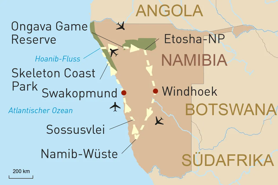 z. B. 12-tägige private Flugsafari zu Namibias Höhepunkten