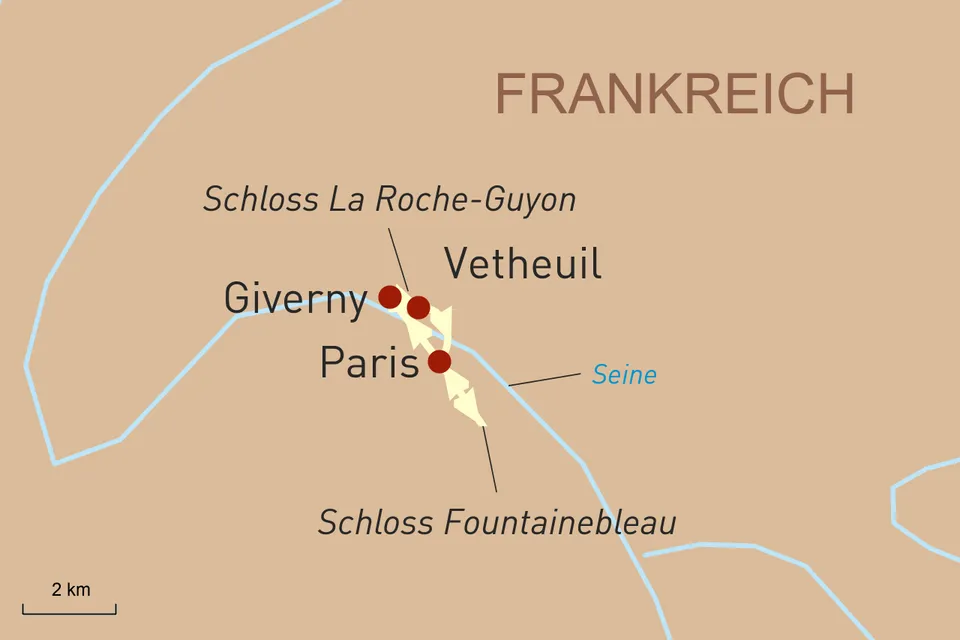 Diese Reise anfragenID: 38437Paris - Metropole an der Seine, Stadt der Liebe. Fünf Tage sind genug, damit auch Sie Ihr Herz an die französische Hauptstadt verlieren. Wir zeigen Ihnen auf dieser Reise die großen Kulturschätze von Paris und die schönsten Schlösser in der Umgebung - ganz komfortabel mit Ihrem eigenen Reiseleiter und einem privaten Fahrzeug. Sehen Sie die Mona Lisa im weltbekannten Louvre, fahren Sie über die Champs-Elysées und schlendern Sie durch das charmante Viertel Montmartre. Im Dorf Giverny wandeln Sie auf den Spuren von Claude Monet und in Versailles tauchen Sie tief in die ruhmreiche Geschichte Frankreichs ein. Anschließend verführt Sie das königliche Jagdschloss Fontainebleau mit dem wunderschönen Schlosspark zum Lustwandeln. Freuen Sie sich außerdem auf eine abendliche Flussfahrt mit 3-Gänge Menü und auf viel freie Zeit um sich einfach treiben zu lassen und das französische "Savoir Vivre" zu genießen.
