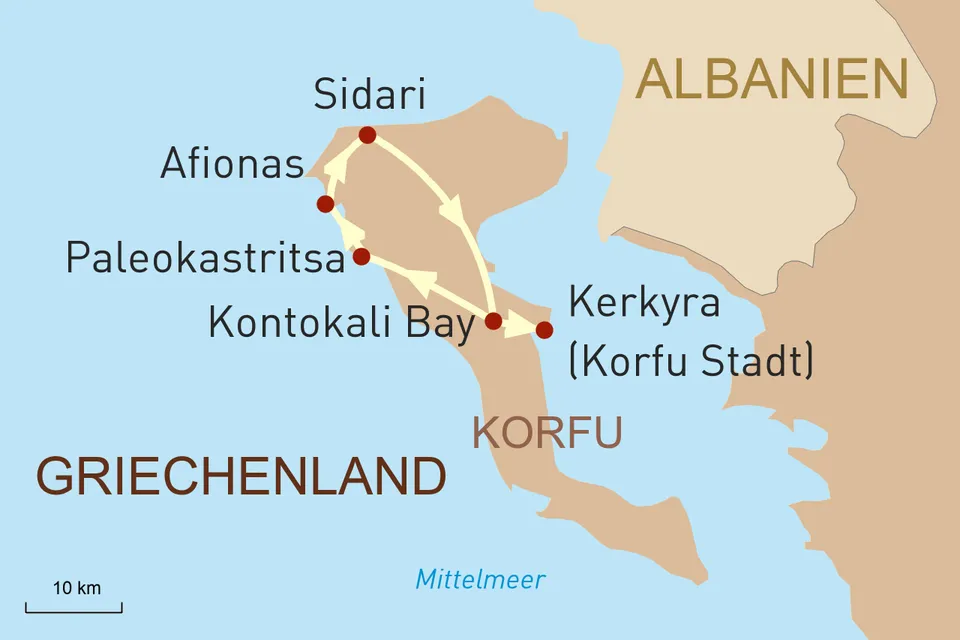 Diese Reise anfragenID: 54185Korfu gilt als eine der größten und grünsten Inseln Griechenlands. Dank ihrer Lage im Ionischen Meer nordwestlich vom griechischen Festland erfreut sie sich eines einzigartigen Klimas. Hier gedeiht eine üppige Vegetation, die Landschaft ist geprägt von jahrhundertealten silbrig-grünen Olivenhainen, dicht bewachsenen Berg- und Hügelketten und dazu malerische Sandstrände, kleine Buchten und sanfte Küstenlinien inmitten der azurblauen Adria. Das alles macht Korfu zu einem idealen Ort, um die Seele baumeln zu lassen. Zu den wohl berühmtesten Gästen zählte die legendäre österreichische Kaiserin Elisabeth („Sissi“), die es immer wieder auf die Insel lockte. So schwärmte sie „Korfu ist ein idealer Aufenthalt, Klima, Spaziergänge im endlosen Olivenschatten, gute Fahrwege und die herrliche Meeresluft, dazu den prachtvollen Mondenschein.“ Lassen auch Sie sich verzaubern von der „grünen Perle Griechenlands“, die ein reiches kulturelles Erbe aufweist. Seit 1864 Teil Griechenlands finden sich hier vielerorts interessante Spuren aus Zeiten der venezianischen, englischen und französischen Herrschaft, auf denen Sie bei dieser Reise wandeln können.