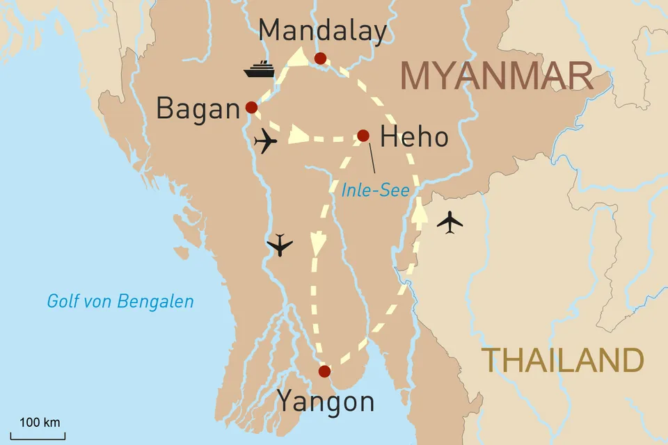 - Flüge in Myanmar gemäß Programm