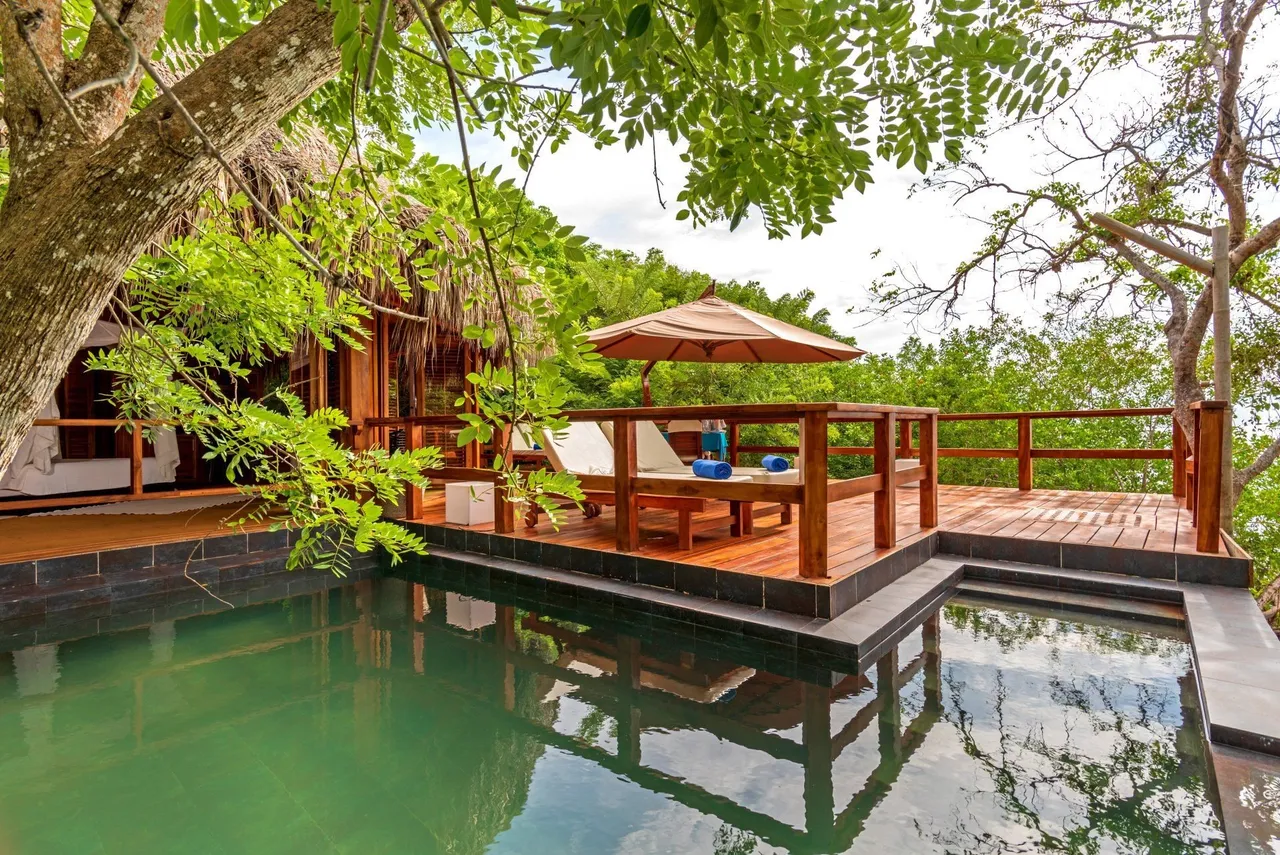 Die eleganten Bungalows des Resorts zeichnen sich durch Naturverbundenheit aus und bieten spektakuläre Blicke auf das türkisblaue Meer und die tropische Landschaft der Halbinsel Barú.