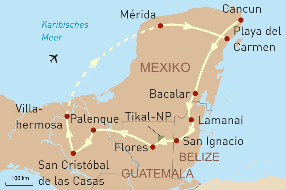 z.B. 16-tägige Privatreise durch Mexiko, Belize und Guatemala