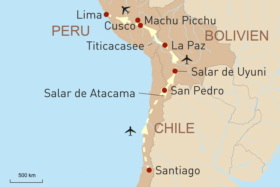 z. B. 20-tägige Privatreise durch Chile, Bolivien und Peru