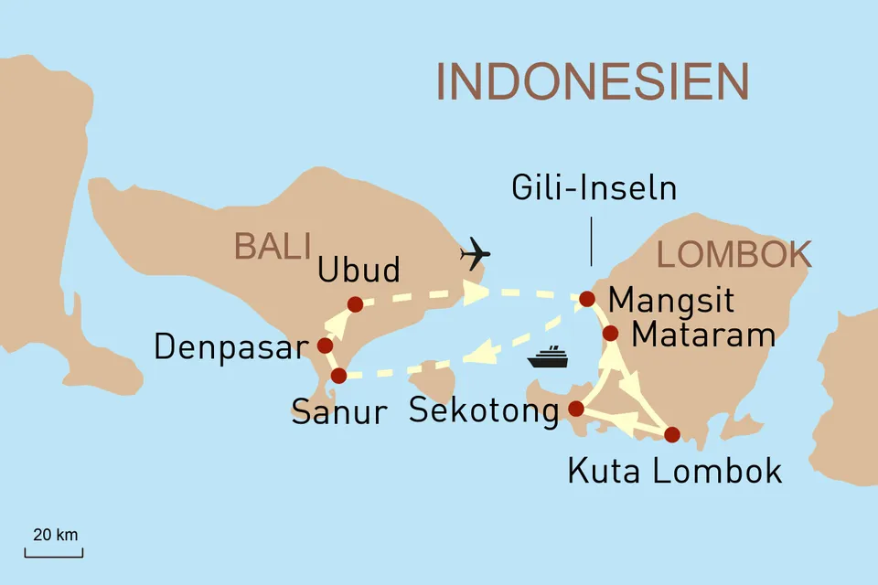 - Flug ab Denpasar (Bali) bis Mataram (Lombok) in der Economy Class inkl. Steuern und Gebühren