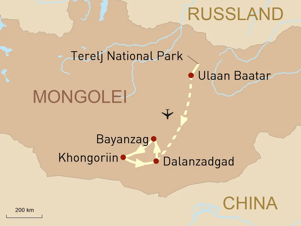 - Inlandsflug von Ulaan Baatar nach Dalanzadgad