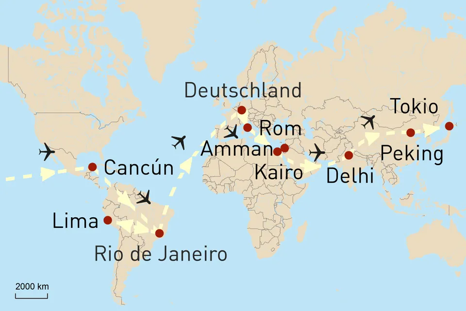 seiner Liebe. Der Taj Mahal begeistert mit weißem Marmor, einem weitläufigen Garten und wurde auf einem erhöhten Marmorterrassen-Plateau am Ufer des Flusses Yamuna erbaut. Im Anschluss entdecken Sie das Rote Fort von Agra. (F) Tag 17 Zurück nach Delhi Die Schönheit des Taj Mahal noch im Sinn, geht es zurück nach Delhi. (F) Tag 18-19 Flug nach Peking Peking glänzt mit einer nahezu 3.000-jährigen Geschichte. Der bekannteste Abschnitt der legendären Chinesischen Mauer, Badaling, ist von Peking aus leicht zu erreichen. Bei Ihrer Ankunft am nächsten Tag werden Sie zu Ihrem Hotel gebracht, wo Sie sich etwas erholen können. (F) Tag 20 Chinesische Mauer und Himmelstempel Die Chinesische Mauer ist ein bemerkenswertes Zeugnis der Ingenieurskunst und erstreckt sich über Tausende von Kilometern von der Ostküste Chinas bis in den Westen. Einige der schönsten Abschnitte der Chinesischen Mauer sind nur eine kurze Fahrt von Peking entfernt. Genießen Sie den Ausblick über die tiefgrüne Natur, die die Mauer umgibt. Anschließend erwartet der prächtige Himmelstempel Ihren Besuch. (F) Tag 21 Ming-Gräber und Impressionen Pekings Nicht weit von Peking entfernt bezaubert das eindrucksvolle Ming-Grab von Chang Ling. Nach diesen Impressionen tauchen Sie bei einer Shoppingtour in der Xidan Commercial Street in das moderne China ein. Am Abend Flug von Peking nach Tokio. (F) Tag 22 Tokio Mit Tokio erwartet Sie eine Stadt der Superlative, wie Ihnen eine Stadtbesichtigung zeigen wird. (F) Tag 23 Nach Cancún Über die Weiten des Pazifiks hinweg setzen Sie Ihre Reise fort in die mexikanische Küstenstadt Cancún. In Mexiko angekommen, werden Sie zu Ihrem Hotel gebracht. (F) Tag 24 An der Küste entlang nach Chichén Itzá Folgen Sie der Küstenlinie Mexikos zu den Ruinen von Tulum, einer beeindruckenden Hafenanlage der Maya, die bis heute überdauert hat. Anschließend setzen Sie Ihre Fahrt nach Chichén Itza fort - eines der 7 neuen Weltwunder. (F) Tag 25 Chichén Itzá Heute tauchen Sie in die mythische Welt der Maya ein, wenn Sie die im Dschungel liegende archäologische Zone von Chichén Itzá besuchen. Zahlreiche Brunnen, die sogenannten Cenotes, prägen die Stadt ebenso wie Tempel, Treppen, Säulen und der imposante Ballspielplatz. Zu den Highlights von Chichén Itzá gehört die Pyramide des Kukulcán. Sie ist astronomisch präzise ausgerichtet, sodass während der Tag- und Nachtgleichen das Sonnenlicht die Illusion einer Schlange erzeugt, welche die Stufen der Pyramide hinabsteigt. (F) Tag 26 Ek Balam Auf Ihrer Rückfahrt nach Cancún erwartet Sie inmitten des dichten Dschungels die Ruinenstadt Ek Balam. Sie bezaubert mit hervorragend erhaltenen Stuckfassaden und meisterlichen Reliefs. Erst seit 1997 arbeiten Archäologen an der Freilegung des Areals und so liegen noch immer große Teile der Stadt im Regenwald verborgen. Anschließend fahren Sie weiter nach Cancún. (F) Tag 27 Flug nach Rio de Janeiro Heute geht es weiter nach Rio de Janeiro. Die brasilianische Metropole verströmt ein einzigartiges Flair an Lebensfreude und bietet mit ihrer üppigen Vegetation, dem tiefblauen Meer und weißen Stränden eine wunderschöne Kulisse. (F) Tag 28 Cristo Redentor & Zuckerhut Ihr Ziel ist heute eines der bekanntesten Wahrzeichen Rios, die rund 30 m hohe Statue des Cristo Redentor (mit Sockel 38 m) auf dem Corcovado. Cristo Redentor wurde im Jahr 2007 zu einem der neuen 7 Weltwunder gewählt. Auch der Zuckerhut, der sich 395 m über der Stadt erhebt, darf auf Ihren Erkundungen nicht fehlen. (F) Tag 29 Von Rio de Janeiro nach Lima Brasiliens Lebensfreude klingt noch nach, wenn Sie heute Ihren Flug nach Peru antreten. In der peruanischen Hauptstadt Lima angekommen, werden Sie bereits erwartet und zu Ihrem Hotel gefahren, wo Sie sich auf Ihre Weiterreise in die historische Stadt Cusco am nächsten Morgen einstimmen können. (F) Tag 30 Cusco Mit Cusco empfängt Sie heute die ehemalige Hauptstadt des Inkareichs. Von den Inkas „Nabel der Welt“ (Qusqu) genannt und im 11. Jh. gegründet, bezaubert Cusco heute mit einer faszinierenden Mischung aus archäologischen Inka-Stätten und spanischer Kolonialarchitektur. Bei einer Stadtrundfahrt entdecken Sie die zahlreichen Highlights der schönen Andenstadt. (F) Tag 31 Die Ruinen von Machu Picchu Der heutige Tag beginnt mit einer Zugfahrt durch die fantastischen Andenlandschaften bis nach Aguas Calientes, Tor zu einer der berühmtesten archäologischen Stätten der Welt: die Ruinen von Machu Picchu. Die Inka-Zitadelle hoch in den Bergen der peruanischen Anden gilt als das beeindruckendste architektonische Bauwerk des Inka-Reiches. Ausgeklügelte Wassersysteme, Tempel und Paläste, Terrassen und Denkmäler gewähren einen Einblick in die Zeit der Inka. (F) Tag 32 Machu Picchu und Zugfahrt nach Cusco Nutzen Sie noch einmal die Zeit für eine Tour auf eigene Faust durch die spektakulären Inkaruinen. Auf der Zugfahrt zurück nach Cusco können Sie die Erlebnisse der letzten Tage Revue geschehen lassen. (F) Tag 33 Nach Rio de Janeiro Zahlreiche Erkundungen und atemberaubende Besichtigungen auf den Spuren der Weltwunder liegen hinter Ihnen und langsam heißt es Abschied nehmen. Sie fliegen zurück nach Rio de Janeiro. (F) Tag 34 Rio de Janeiro Genießen Sie den letzten Tag Ihrer Reise in der brasilianischen Metropole. (F) Tag 35-36 Rückreise Mit unvergesslichen Impressionen im Gepäck endet heute Ihre Reise. Zur gegebenen Zeit werden Sie zum Flughafen gebracht und treten Ihren Rückflug nach Deutschland an. Ankunft am nächsten Tag. (F)