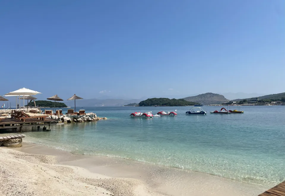 Weiter geht’s ans Meer – ans Ionische, um genau zu sein. Unser Ziel: Ksamil. Nur 20 Minuten von Saranda entfernt liegt dieses kleine, fast dörfliche Paradies direkt an der Grenze zu Griechenland. Von hier aus sieht man die griechische Insel Korfu, die man per Fähre bequem von Saranda erreichen kann.