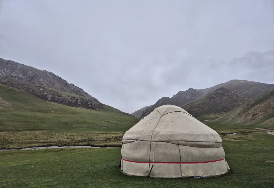 Bevor ich die Hauptstadt Bishkek erreiche, führt mich mein Weg noch zum entlegenen Son-Kul-See, der auf rund 3.000 Metern inmitten der alpinen Steppe liegt. Hier verbringe ich die Nacht erneut in einem traditionellen Jurtenlager – umgeben von endloser Weite, grasenden Schafen und Pferden, inmitten der sommerlichen Hochweiden.