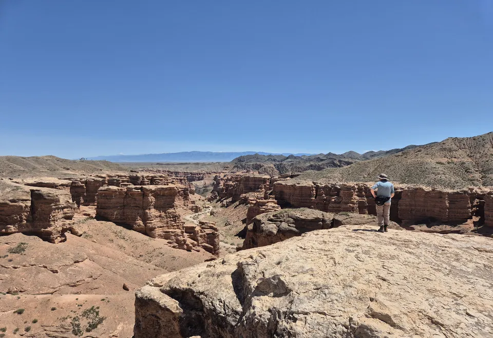 Auf dem Weg nach Kirgistan erwartet mich ein weiteres Naturhighlight Kasachstans – der Sharyn Canyon. Der Canyon wird oft als kleiner Bruder des großen Grand Canyons in den USA bezeichnet. Mit seinen bizarren, rotgoldenen Klippen und steilen Schluchten erstreckt sich der Canyon über 150 Kilometer, und kann von Besuchern auf verschiedenen Pfaden erwandert werden.