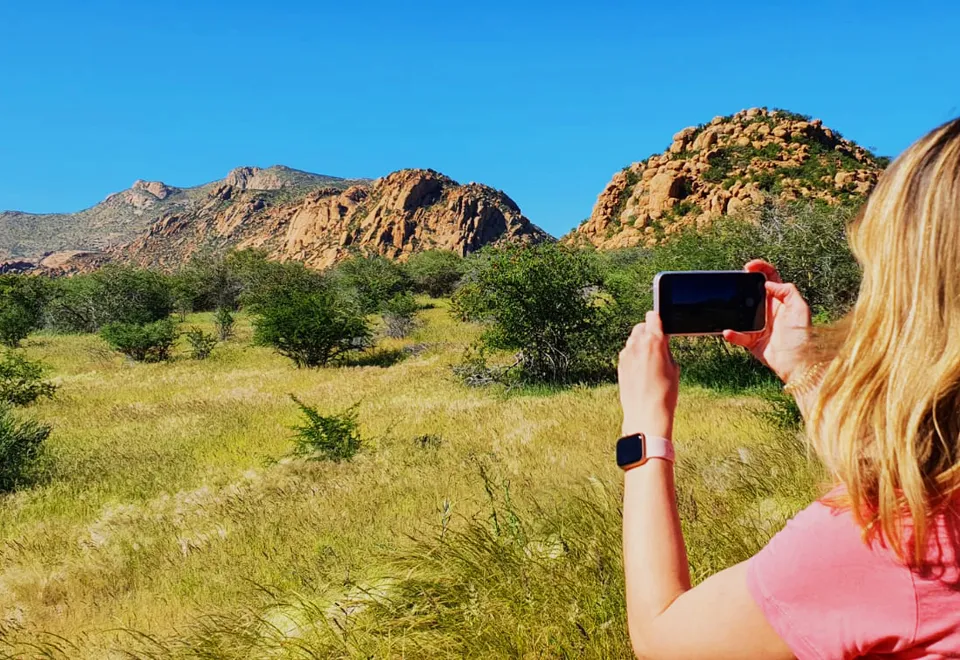 Am nächsten Tag ging es weiter in das Erongo Gebirge. Eine faszinierende Landschaft, die zum Wandern einlädt. Ein Sundowner am Abend durfte natürlich auch nicht fehlen!