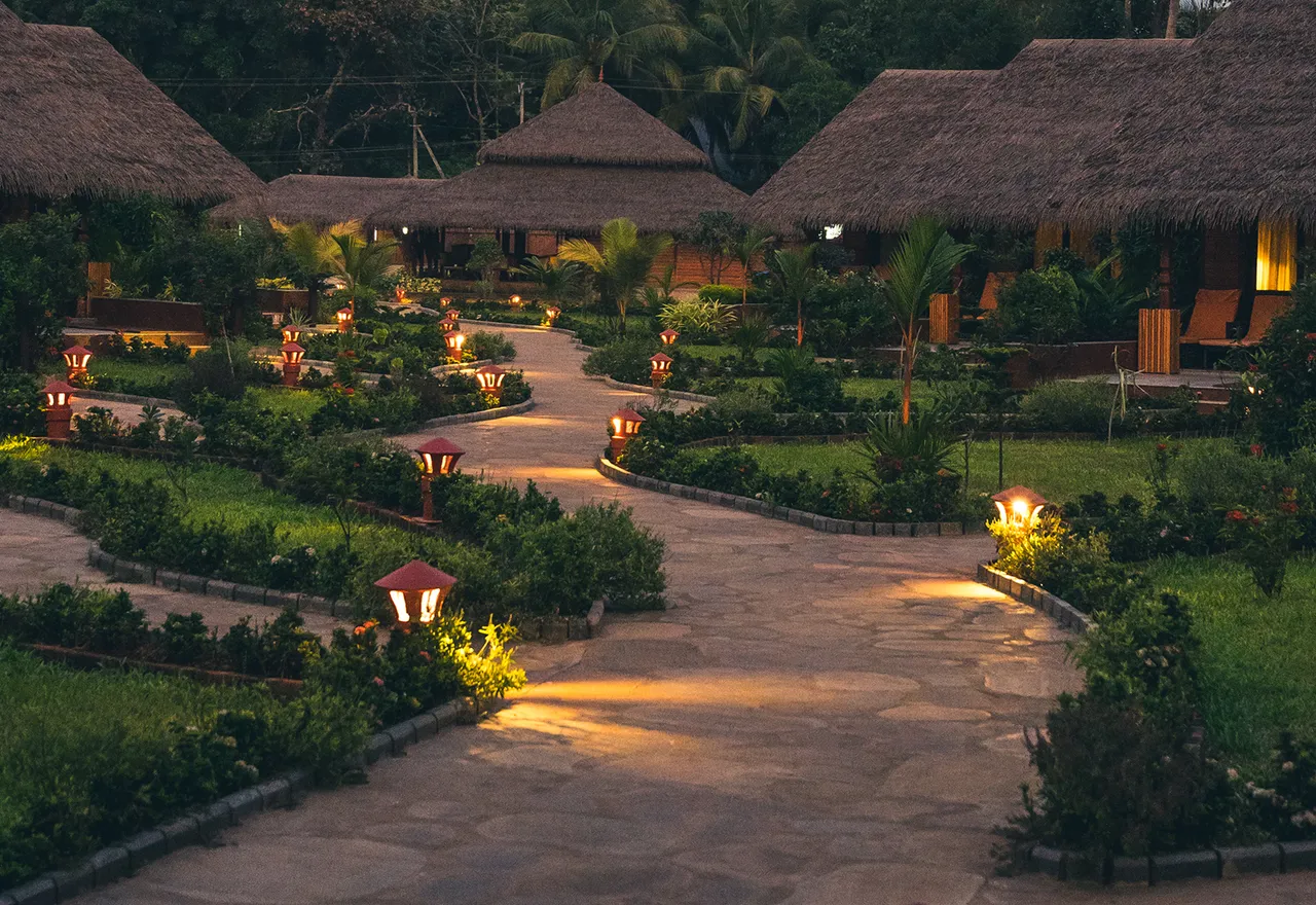 Die Cottages sind aus natürlichen Materialien gebaut, die den Raum kühl halten und für eine gute Belüftung sorgen. Sie liegen inmitten einer tropischen Garten-Anlage und sind zum Meer ausgerichtet. Die acht „Stone Luxury Cottages“ und die zehn „Wooden Luxury Cottages“ sind großzügig geschnitten, alle mit Terrasse und zusätzlicher Freidusche unter offenem Himmel ausgestattet.