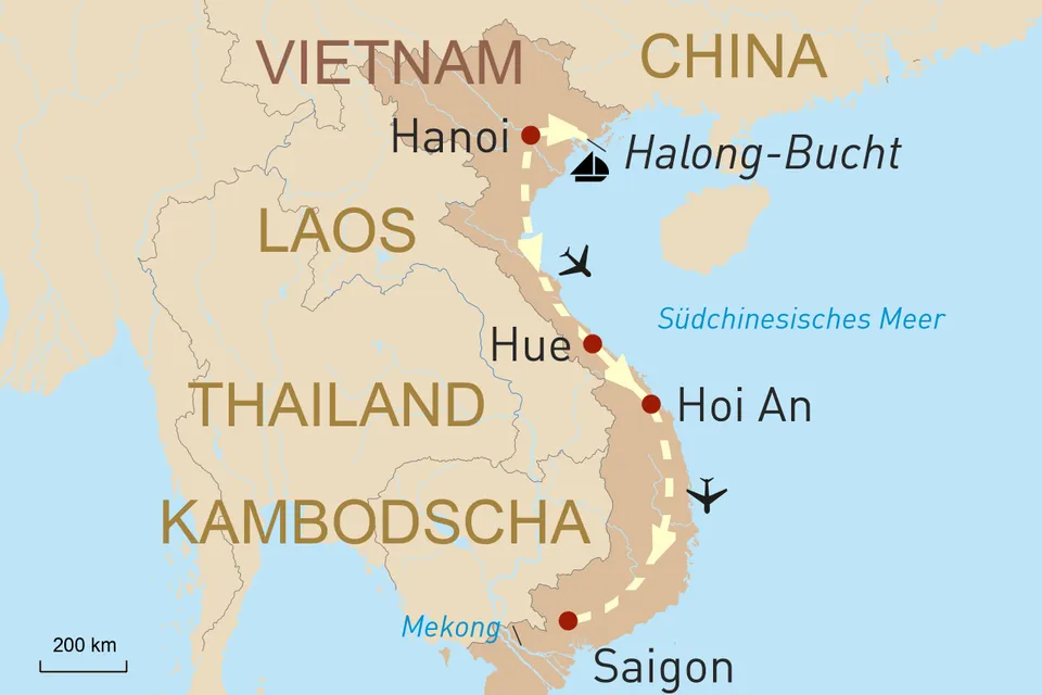Diese Reise anfragenID: 62070Diese Tour macht Sie mit den kulturellen Höhepunkten Vietnams vertraut und bietet Ihnen einen intensiven Einblick in dieses vielfältige und reizvolle Reiseziel. Vietnams Hauptstadt Hanoi und ein Ausflug in die touristisch noch unerschlossene Lan Ha-Bucht, einem Ausläufer der Halong-Bucht, bilden den Auftakt Ihrer Entdeckungsreise durch das facettenreiche Vietnam. In Hue, der Stadt am Fluss der Wohlgerüche, besichtigen Sie die imposanten Grabmäler früherer vietnamesischer Kaiser, bevor es über den Wolkenpass zum romantischen Städtchen Hoi An geht. Zum Schluss der Reise erkunden Sie Saigon und das verzweigte System der Wasserstraßen des Mekong-Deltas.